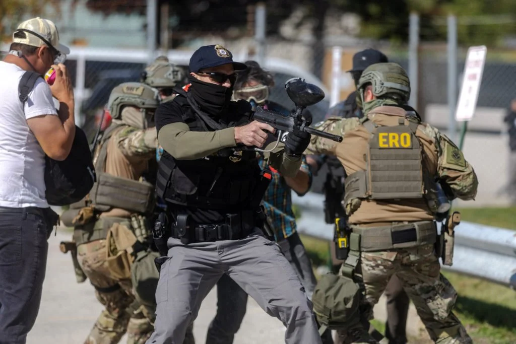 Intussen drijft Trump de acties van ICE verder op. Immigratieagenten in anonieme voertuigen, gekleed als paramilitaire troepen met gezichtsbedekking en gewapend met pistolen, vallen binnen in winkels, bars, hotels, restaurants, carwashes, woningen en zelfs bij vrijwilligers die mensen zonder papieren helpen met voedsel en juridisch advies. De regering gaf de ICE zelfs toestemming om ook scholen, ziekenhuizen en gebedshuizen binnen te vallen.[11] Alle kenmerken van een politiestaat zitten hierin. De ICE-agenten en de grenspatrouilles moeten dus geen gegronde reden hebben om iemand te arresteren. Het is duidelijk dat etnisch profileren zoals het beoordelen van huidskleur, gezichtskenmerken en kledij een rol spelen. Ook hier is de parallel met de jaren dertig duidelijk.[12] In diverse staten vonden demonstraties plaats tegen deze massadeportaties waarbij men spandoeken droeg met de tekst: ‘Niemand is illegaal’. In Minneapolis en San Diego kwam het tot confrontaties met gewapende en gemaskerde ICE-immigratieambtenaren en de politie.[13] Op 6 juni 2025 viel de ICE binnen in verschillende bedrijven en een familiecentrum in Los Angeles waardoor veel gezinsleden van elkaar werden gescheiden. Dat leidde tot hevige protesten en demonstraties. Daarop stuurde Trump soldaten van de Nationale Garde en elitetroepen van de marine naar de stad (in strijd met Amendement 10) tegen de zin van gouverneur Gavin Newsom die stelde dat hij die ongeregeldheden zelf eenvoudig kon aanpakken. ‘Trump misbruikt zijn macht en probeert bewust de boel te laten escaleren. Daarmee brengt hij de levens van veel mensen in gevaar,’ aldus Newsom.[14]